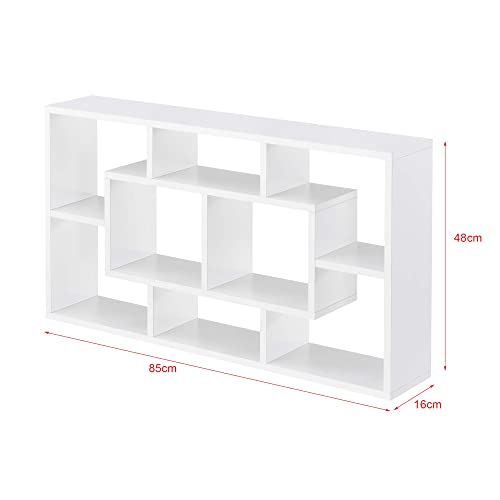 Mensola da Parete a Forma Rettangolare con 8 Scomparti 85 x 16 x 48 cm Scaffale Pensile con Ripiani Portaoggetti Libreria - Bianco