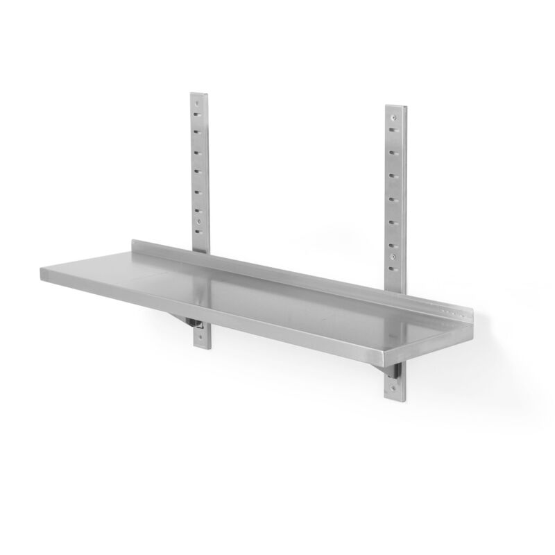 Realizzato in acciaio inox AISI 430. Ripiano pensile con bordo posteriore (profondità ripiano 267 mm. Possibilità di smontare il ripiano per la pulizia).