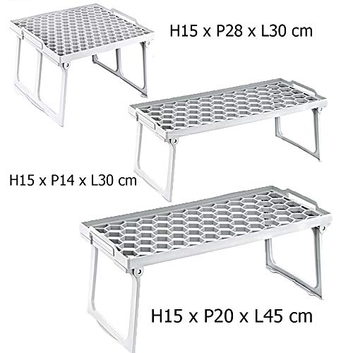 Vi proponiamo questa mensola salvaspazio in polipropilene bianca, comoda pratica e richiudibile con gommini antiscivolo e base a nido d'ape ed anche impilabili,