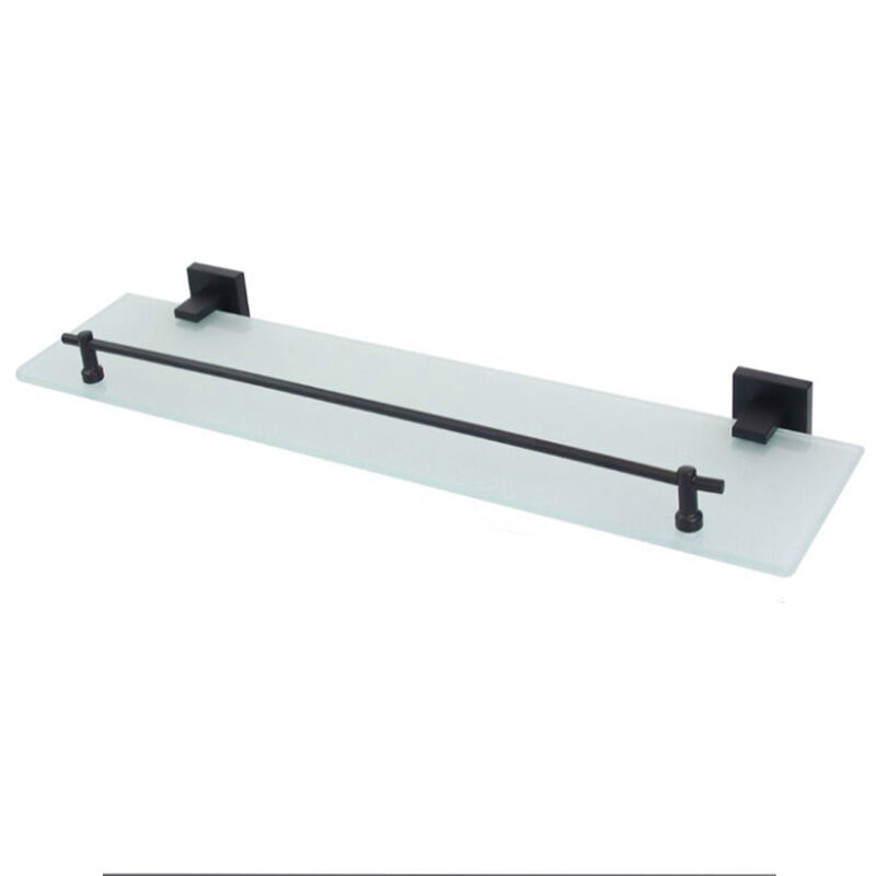 Mensola da bagno realizzata in vetro satinato ideale per ogni arredamento. Ideale per tenere a portata di mano shampoo, sapone e altri accessori cosmetici. La barra in alluminio posta sulla mensola impedisce agli oggetti di cadere. È predisposto per essere fissato con biadesivo ad alto potenziale 3M VHT in alternativa può essere fissato con viti (viti e biadesivo inclusi nella confezione). Colore reggimensola e staffe: Nero Materiale: Acciaio e vetro satinato Dimensioni: 52x12x0.5 cm