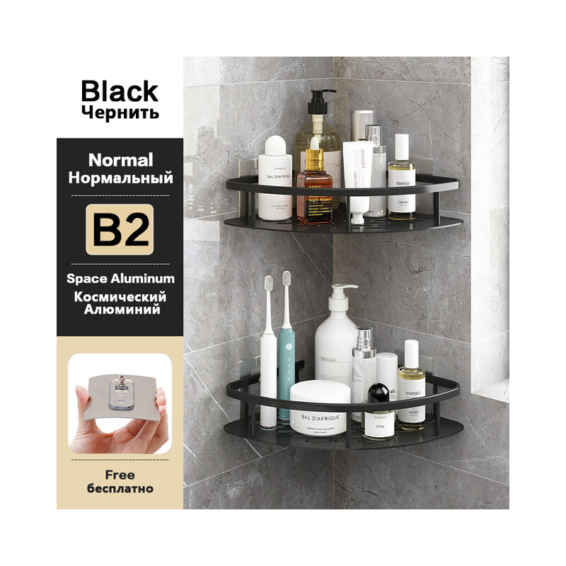 Mensole per bagno scaffale di stoccaggio a triangolo in alluminio punzonatura senza parete scaffale per wc accessori per il bagno mensola galleggiante a 3 pareti,B2-No punch-Black