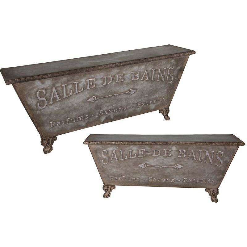 Aspetto Materiale principale Zinco Materiali secondari Ferro Dimensioni del modello grande Altezza (in cm) 22 Lunghezza (in cm) 49 Profondità (in cm) 14 Dimensioni del modello piccolo Altezza (in cm) 19 Lunghezza (in cm) 41 Profondità (in cm) 11 Altre caratteristiche Composizione Set di 2 mensole da bagno Informazioni aggiuntive 2 ganci sul retro di ogni ripiano Peso (in kg) 1,28 Mensole da bagno in zinco (set di 2)