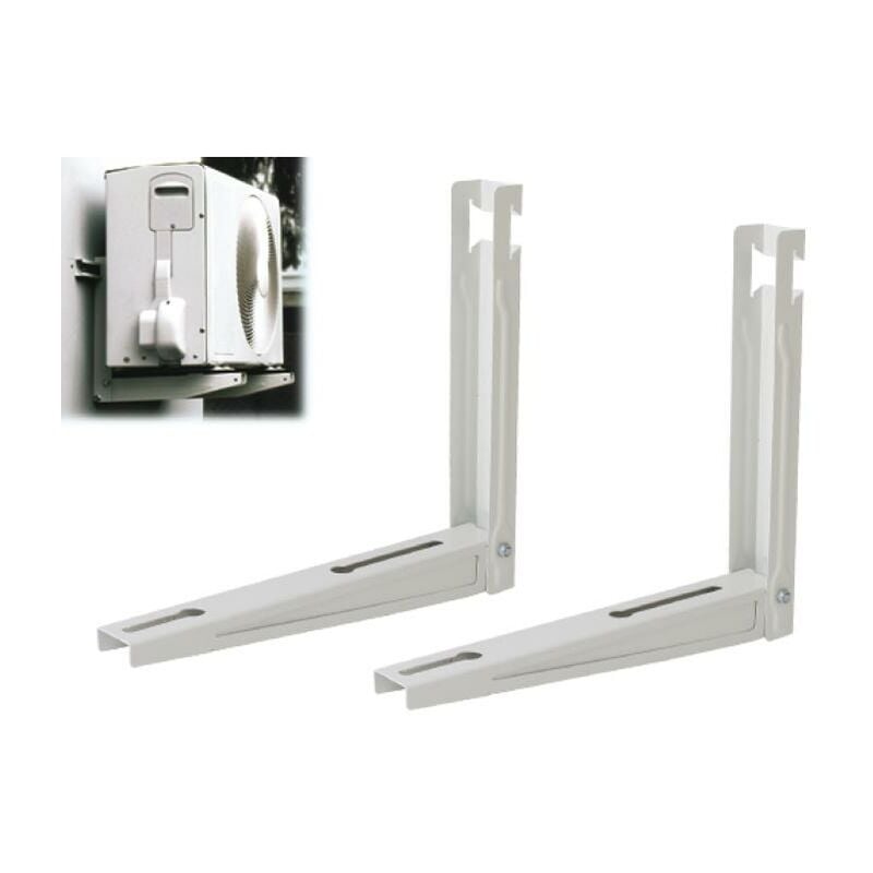 Mensole ad L per condizionatori esterni, premontate realizzate in lamiera elettrozincata (Ral 9002), complete di appositi piedini antivibranti, dotate tasselli per il fissaggio a muro. Dimensioni P420 x H400 mm.