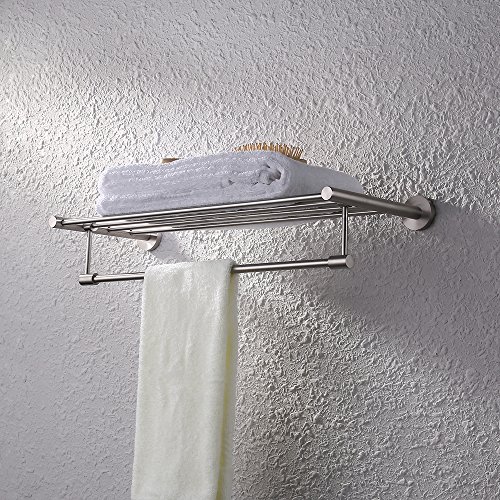 KES Mensole Portasciugamani Con Barre di Tovagliolo Pieghevole Minimalista Bagno, Spazzolato SUS 304 Acciaio Inossidabile, A2115-2