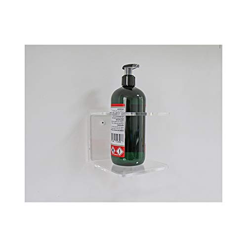 Mensolina porta dispenser gel igienizzante in plexiglass termopiegato, per gel disinfettante mani, da fissare a parete