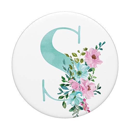 Menta rosa fiori fiori verde acqua blu monogramma lettera S regalo PopSockets PopGrip Intercambiabile