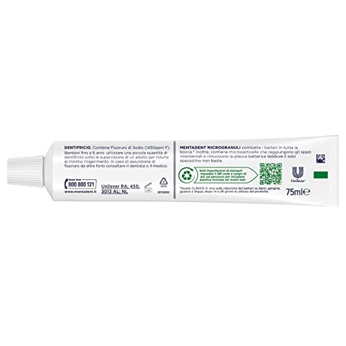 Il kit contiene: 5x Mentadent Microgranuli Dentifricio Pulizia Interdentale Profonda da 75 ml