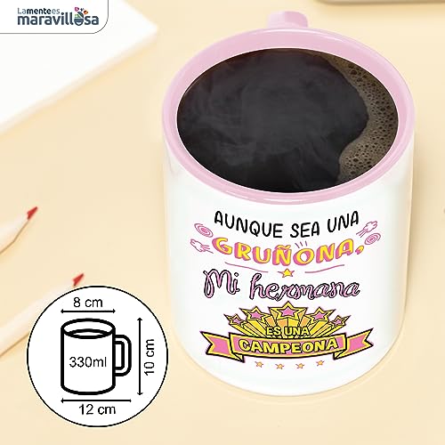 LA MENTE ES MARAVILLOSA - Tazza in Ceramica con Frase e Disegno |Mi Hermana es Una Campeona| 330 ml Originale Regalo per Persona Speciale, Tazza di caffè e tè