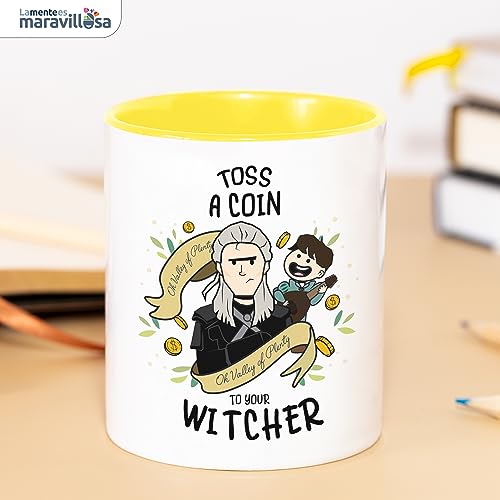 LA MENTE ES MARAVILLOSA - Tazza in Ceramica con Frase e Disegno | Toos a coin to your Witcher | 330 ml Originale Regalo per Persona Speciale, Tazza di Caffè, Tè e Tisane