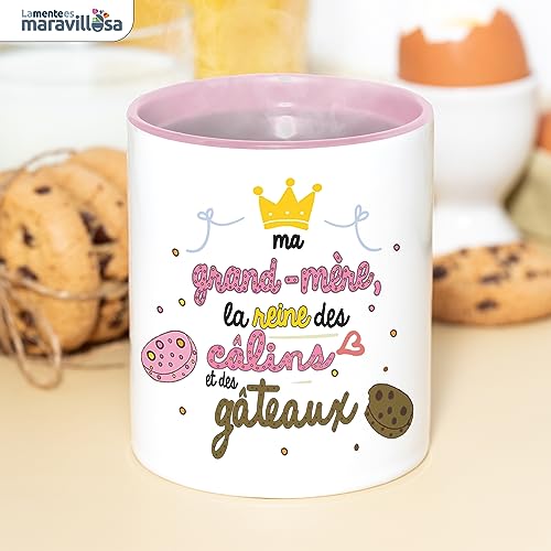 LA MENTE ES MARAVILLOSA - Tazza in Ceramica con Frase e Disegno | Ma grand-mère, la reine des clins et des gteaux | 330 ml Originale Regalo per Persona Speciale, Tazza di Caffè, Tè e Tisane