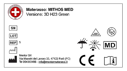 Mentor - Materasso Memory MED ADVANCED H2 PIAZZA E MEZZO 120x190 Mithos MED 3D H23 GREEN DISP. MEDICO DETRAIBILE 5 cm di Memory a 7 zone, sfoderabile e lavabile.