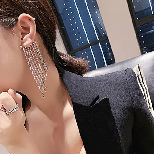 MenYiYDS 1 paio di orecchini con nappa in argento con diamanti Orecchini lunghi con nappe con strass Orecchini a catena con nappe non traforati Orecchini pendenti Orecchini con polsino con nappe