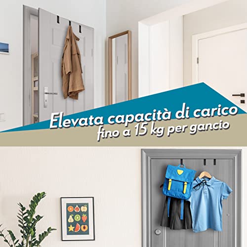 QUALITÀ SUPERIORE: I 4 ganci per porta gancio porta ganci appendiabiti da porta utilizzabili individualmente, realizzati in acciaio verniciato a polvere, hanno bordi arrotondati e antiscivolo;