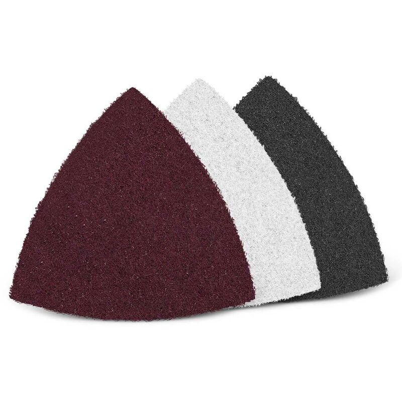 Velli abrasivi MENZER, grosso Informazioni sul Prodotto Vello abrasivo MENZER di alta qualità Per la levigatura intermedia e di precisione, la preparazione alla verniciatura, la rimozione della ruggine, la smerigliatura e la politura delle superfici Corindone normale, carburo di silicio o poliestere resistente Granulazione da grossolana a fina sino alla lucidatura Dati tecnici Spessore: 7 mm Supporto: Fibre sintetiche Dimensioni: 82 mm Tipo di abrasivo: Velli abrasivi Attacco: Sistema a strappo Foratura: nessuna Tipo di grana: Vello di fibra Applicazione Legno: 7/10 Gesso, stucco: 7/10 Plastica: 7/10 Colore, vernice: 7/10 Metallo: 7/10 Legenda: 10 - molto adatto, 0 - non adatto Descrizione del Prodotto MENZER Fleece - per la levigatura fine e intermedia MENZER Fleece è versatile nell'utilizzo. Il vello abrasivo permette di irruvidire vecchi strati di colore per prepararli a una nuova verniciatura. E non solo. È ottimale per la levigatura fine, l'opacizzazione o la disossidazione. Il