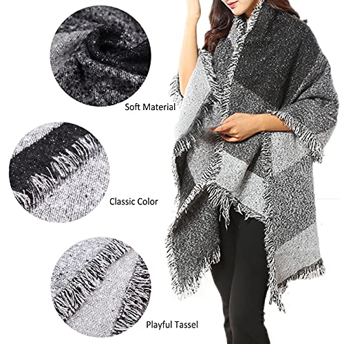 Design unico dell'angolo di smussatura, ti dà una nuova sensazione e con una combinazione di 3 colori, sensazione di tocco accogliente e morbido, facile da darti stile di abbigliamento nei mesi freddi, il mantello della sciarpa in cashmere a quadri.