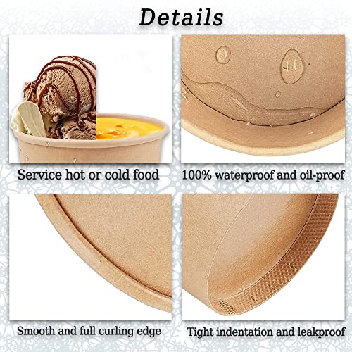 MEOKEY 25 Pezzi Contenitori di Zuppa con Coperchi,Scodelle da Asporto Ciotole Insalata, Bicchiere di Carta Biodegradabile, Perfetti per Contenitori Gelato, e Contenitori Deli (480ml/16oz)