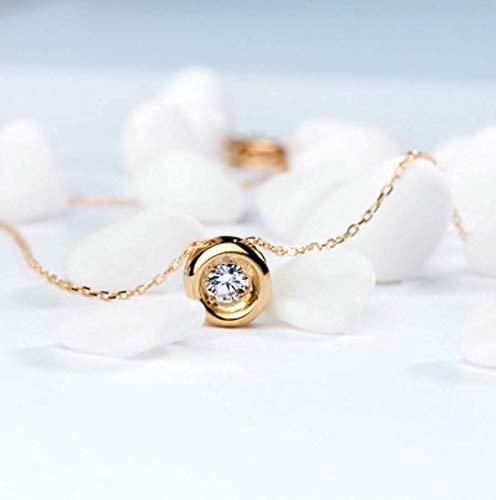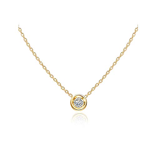 Collana da donna con solitario in zirconia cubica taglio rotondo minimalista, ideale da indossare tutti i giorni, si può indossare da sola come una semplice collana carina o a strati e abbinarla ad altre collane o girocolli moderni.