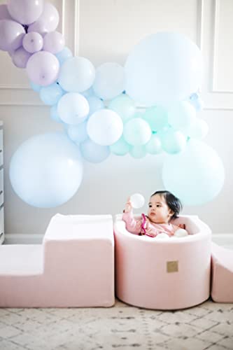 MEOWBABY Parco Giochi in Schiuma con Piscina di Palline per Bambini - Blocchi Morbidi per Bambini 200x45cm/100 Palline, Velluto, Grigio Chiaro: Rosa Pastello/Rosa Chiaro/Menta/Giglio