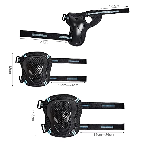 Meowtutu Ginocchiere Bambini, Protezioni in Linea per Bambini, Set di Protezioni per Bambini, Set 6 in 1, Gomitiere, Ginocchiere, Pattini in Linea per Skateboard, Guida, Pattinaggio (Blu)