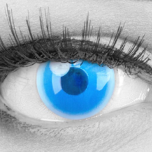 Meralens Lenti a Contatto Colorate azurre 'Nezuko Blue' - con porta lenti a contatto - ideali per Manga Anime Halloween Cosplay - Durata 1 Anno - 1 Coppia senza correzione