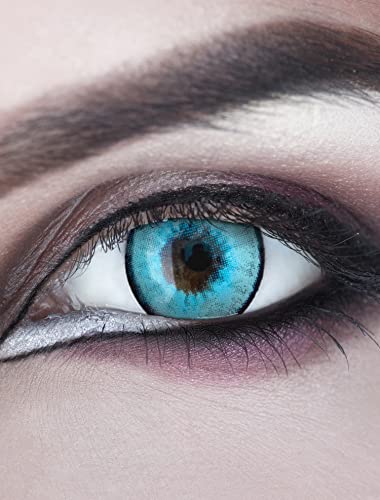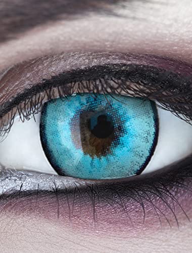 Meralens Lenti a Contatto Colorate azurre Ice Man - con porta lenti a contatto - ideali per Manga Anime Halloween Cosplay - Durata 1 Anno - 1 Coppia senza correzione