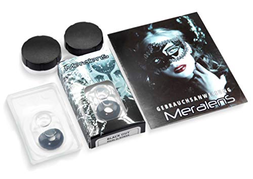 Meralens - Lenti a contatto colorate nero"Black Out" + GRATIS Portalenti (1 x 2 pezzi) - Spedizione Gratuita!