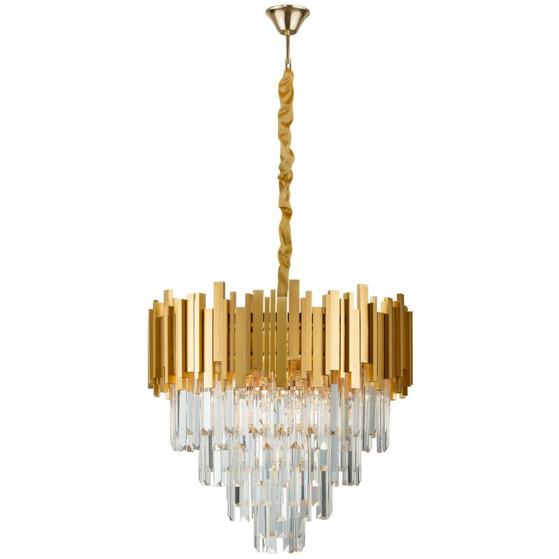 Merano Chatham Plafoniera a Sospensione 8 Luci Metallo Oro, Cristallo LED E14 | Finitura: oro | Materiale: metallo, cristallo | Classificazione IP: IP20 | Altezza: 120 cm | Lunghezza: 55 cm | Larghezza: 50 cm | Tipo di lampada: E14 | N. di lampade: 8 | Lampadina inclusa: No | Dimmerabile: No | Peso: 4,8 kg | Potenza (massima): 8x5W