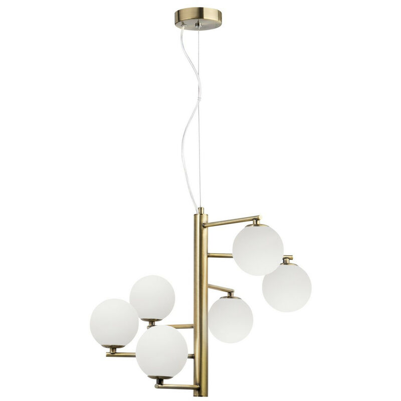 Merano Delta Lampada da soffitto a sospensione a globo con 6 luci, vetro opale, ottone anticato, metallo G9 | Finitura: ottone, bianco | Materiale: vetro, metallo | Classificazione IP: IP20 | Altezza: 150cm | Lunghezza: 45 cm | Larghezza: cm | Tipo di lampada: G9 | N. di lampade: 6 | Lampadina inclusa: No | Dimmerabile: No | Peso: 2,1 kg | Potenza (massima): 6x5W