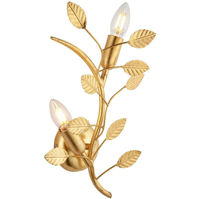 Merano Reggio Lampada da parete in metallo, Foglia Oro | Finitura: foglia oro | Materiale: acciaio | Classificazione IP: IP20 | Altezza: 36 cm | Larghezza: 26 cm | Proiezione: 14,5 cm | Tipo di lampada: E14 | N. di lampade: 2 | Lampadina inclusa: No | Dimmerabile: Sì - Lampadina dimmerabile richiesta | Peso: 0,38 | Potenza (max): 6W LED