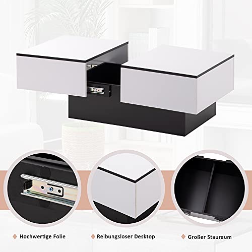 Merax Tavolino universale per divano soggiorno, lucido, con tavolo estraibile e vano portaoggetti (bianco, 102 x 60 x 40 cm)