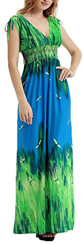 Merciy Maxi abito estivo da spiaggia senza maniche boheme stampata Chic col V da donna, verde, M