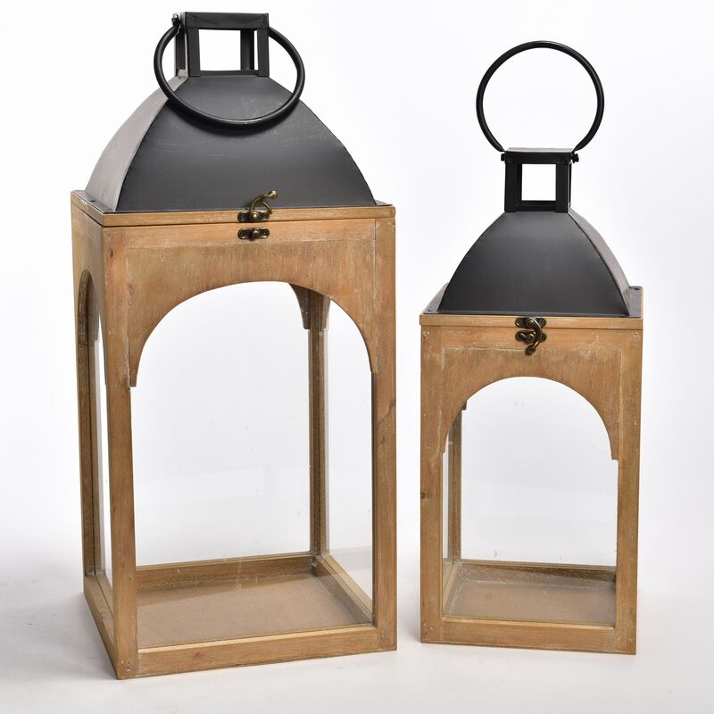 Set 2 lanterne in legno e metallo cm.26x 26x58.5-20x20x45