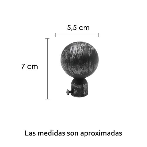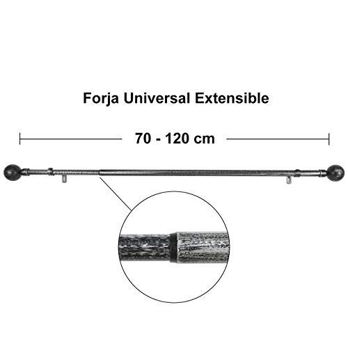 Mercury Textil - Asta semplice in ferro battuto, universale, estensibile, per tende, decorativa, (nero + grigio, 70-120 cm, sfera)
