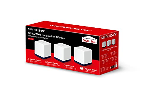 Mercusys AC1900 Whole Home Mesh Wi-Fi System, copertura fino a 550 m², connessione a oltre 100 dispositivi, porte Gigabit complete, Wi-Fi Dual Band, controllo facile app, Halo H50G (confezione da 3)