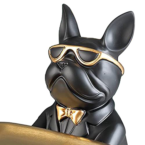 MERIGLARE Vassoio Portaoggetti Statua Bulldog, Decorazione Domestica in Resina - Nero