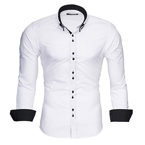 MERISH Camicia Uomo Slim Fit,Camicia Manica Lunga Adatto per Tutte Le Occasioni Casual e Chic, bi-Colore Doppia abbottonatura, Diversi Colori Taglia S - XXL Modell 206