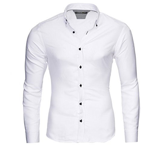 MERISH Camicia Uomo, Slim Fit Camicia Manica Lunga, premuto Il Pulsante Oxford, Adatto per Tutte Le Occasioni,Casual e Chic, Diversi Colori Taglia S - XXL Modell 205 Bianco XL