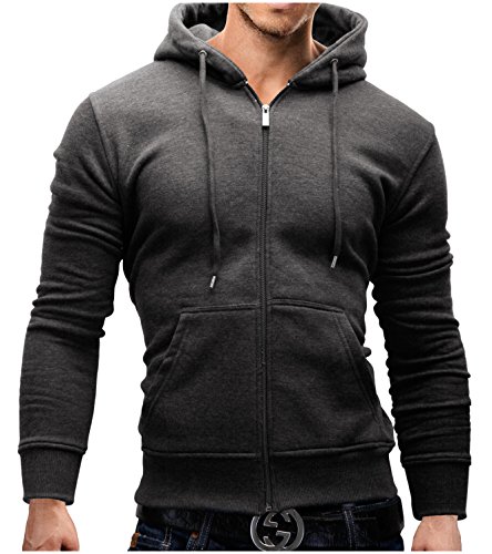 MERISH Felpa con Cerniera, Felpa con Cerniera Intera Uomo,Giacca con Cappuccio, Due Tasche Comodo per Portare Taglia S - XXL Modell 225 Antracite XL