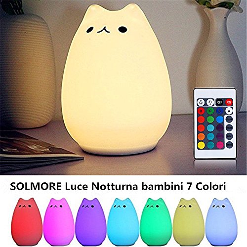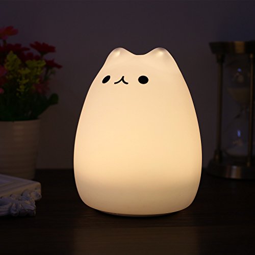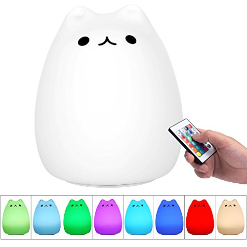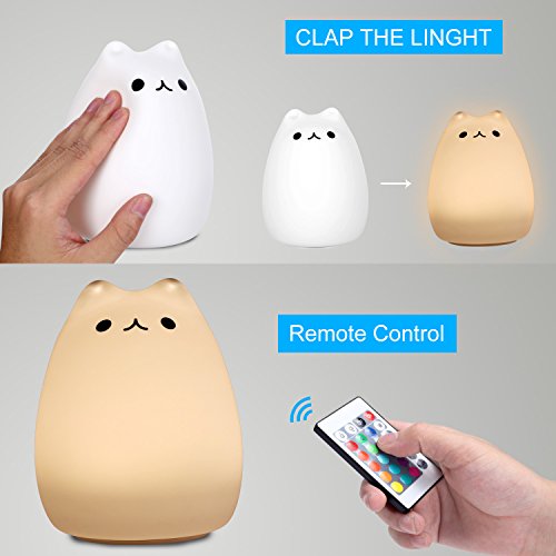 Merisny Luci Notturne per Bambini, Silicone Gatto Decorazioni Luce per Comodino (7 Colori e 3 Modalità di Illuminazione,Tramite cavo USB) (ConTelecomando)