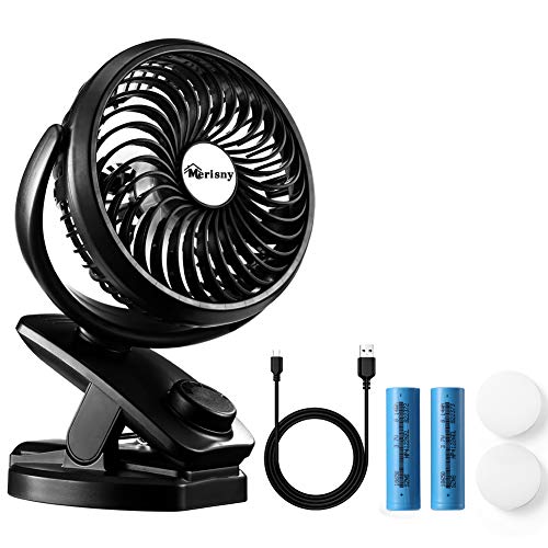 Merisny Mini Ventilatore USB tavolo Clip-on Desk Fan, da 4400mAh alimentata a batteria, Rotazione di 360 ° per Casa,Viaggio, Campeggio, Passeggino, Max 40 Ore