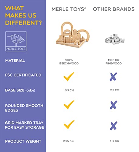 Merle Toys - Blocchi di Costruzione in Legno per Bambini dai 2 Anni, Giocattoli Montessori Educativi, Giocattoli in Legno per lo Sviluppo Motorio e Creativo, Set di 30 Pezzi