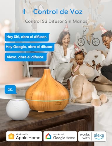 Meross 400ml Diffusore di Oli Essenziali WiFi Con Apple HomeKit, 9-10h Diffusore di Aromi con Colorazione Variabile, Comando Vocale Compatibile Con Apple HomeKit, Alexa e Google Home