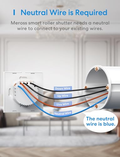 ⚠️ FILO NEUTRO NECESSARIO PER L'INTERRUTTORE A PARETE MEROSS: Poiché il modulo WiFi deve essere alimentato, l'interruttore collegato deve avere un filo neutro, altrimenti l'interruttore WiFi per tapparelle non funzionerà. La maggior parte delle vecchie case non hanno un filo neutro, se non siete sicuri, vi preghiamo di inviarci gli schemi elettrici prima dell'acquisto. Inoltre, questo interruttore a muro touch è adatto solo per la tapparella elettrica o la tenda della finestra.