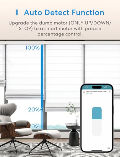 ⭐ CONTROLLO PERCENTUALE E RILEVAMENTO AUTOMATICO: La funzione brevettata di calibrazione automatica può aggiornare un motore tradizionale (SOLO SU/GIÙ/STOP) a un motore intelligente con controllo percentuale accurato (1%-100%). Grazie all'interruttore a tapparella collegato, è possibile impostare la percentuale di tenda su e giù tra 0% e 100% tramite l'app, per ottenere un'illuminazione più confortevole.