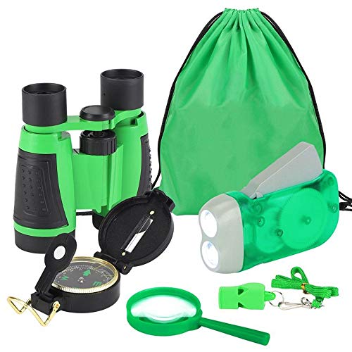 MEROURII Kit per Esploratore Esterno per Bambini Binocolo Manovella Torcia Lente d'Ingrandimento Set di Fischietti con Zaino con Coulisse per Campeggio Escursionismo per Ragazzi Ragazze