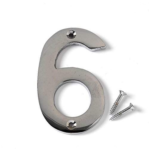 Merriway BH04333 Cifra Civico, Profilo Piatto, Finitura Cromata, Numero 6, Bianco, 75 mm