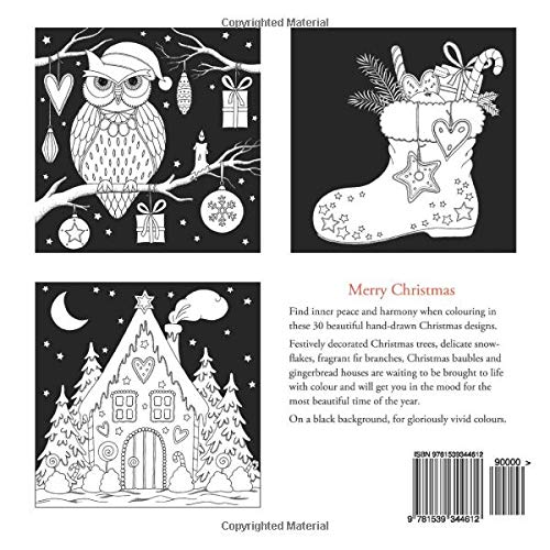 Merry Christmas: a beautiful colouring book with Christmas designs on a black background, for gloriously vivid colours