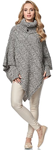 Poncho con guanto da donna a mezze dita, collo alto con bottoni