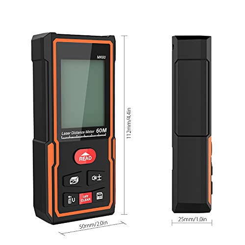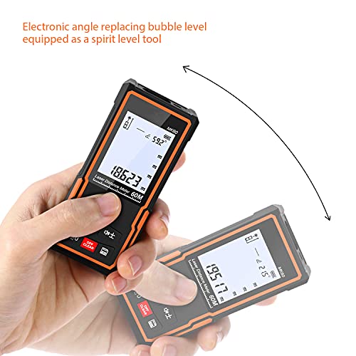 Merterks Metro Laser, Telemetro Laser Distanziometro, Dispositivo di Misurazione Della Distanza con Portata 60M, 30 Set di Dati, IP54, Retroilluminazione LCD, Misurazione Accurata, 16cm x 8,5cm x 5cm