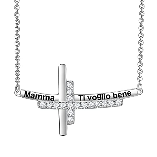 MESASTOM Collana Donna Argento 925 Ciondolo Croce Fortunata con Incisione Festa della Mamma Natale Compleanno Regalo per Mamma Nonna Moglie